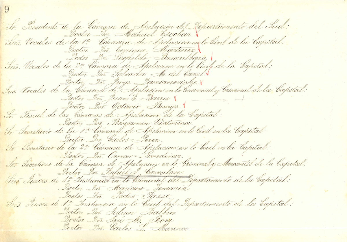 Bajo la presidencia del Dr. Manuel María Escalada, y con ausencia autorizada del Dr. Carlos Tejedor, juraron los vocales Sixto Villegas, Alejo B. González y Sabiniano Kier junto con el presidente y el secretario Aurelio Prado y Rojas.