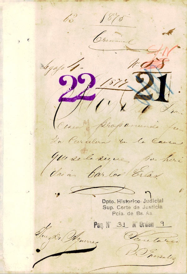 “Criminal contra Carlos Erlas por heridas á Francisco Alonzo en el Partido de Balcarce el día 7 de Febrero del presente año”