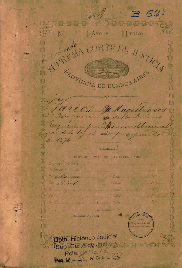 “Varios magistrados del Poder Judicial de la Provincia de Buenos Aires recurren por inconstitucionalidad de la Ley de presupuesto de 1876“