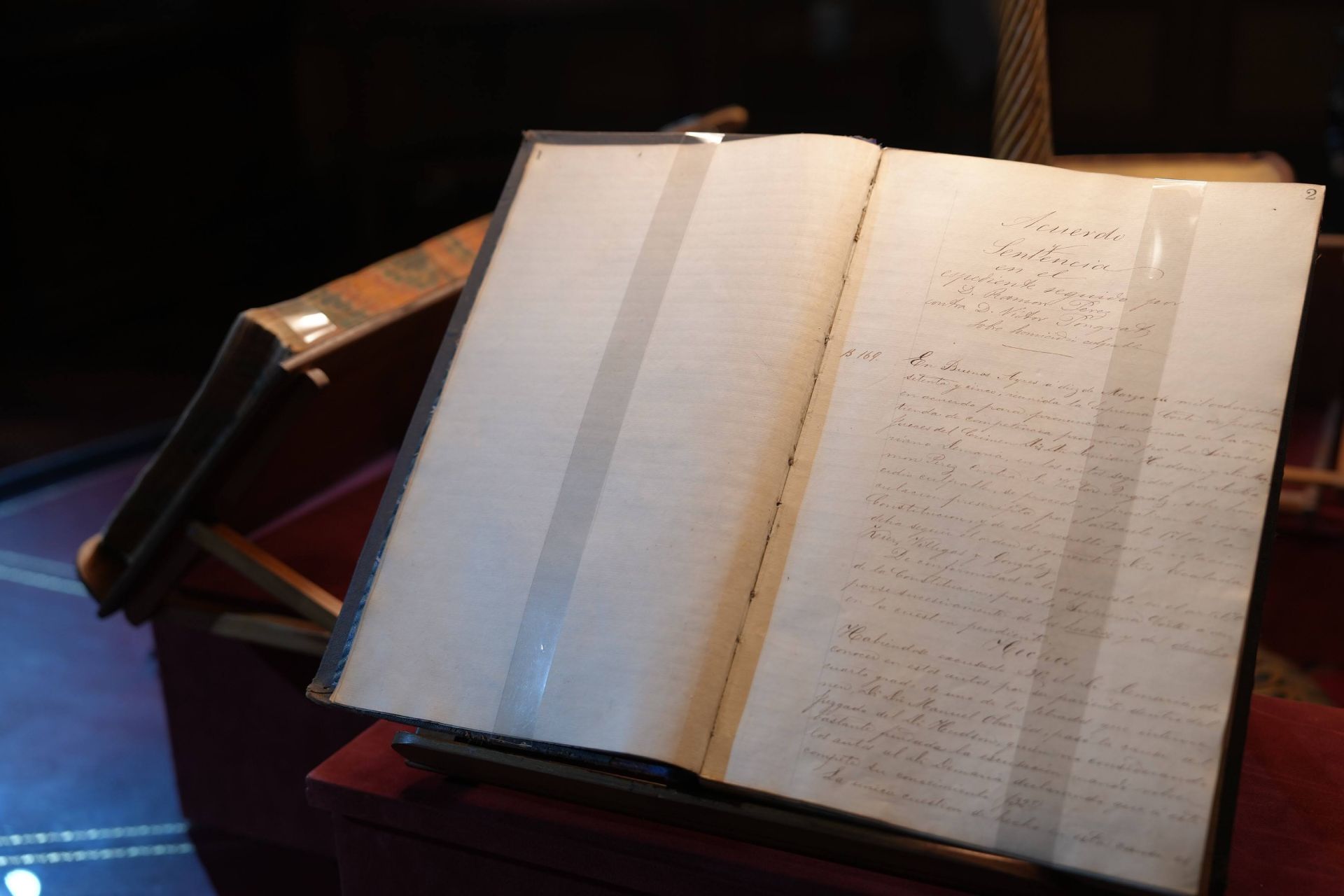 En la Sala de Acuerdos de Verano de la Casa de Justicia, espacio de alto valor patrimonial, se exhiben tres libros que dan testimonio de los primeros pasos del máximo Tribunal y de su consolidación institucional.
